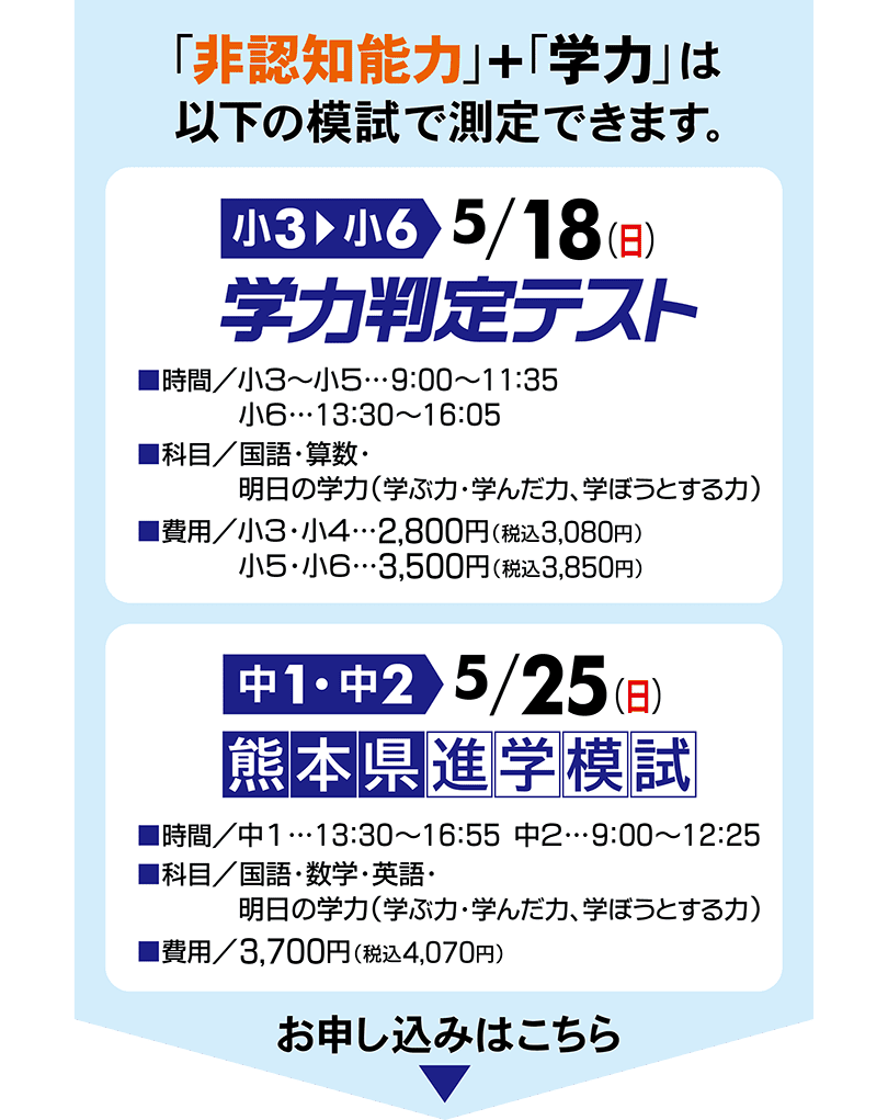 | 得意な分野もあったと気付けたのがよかった。 | 娘が勉強に取り組む姿勢や、得意なこと・苦手なことなど、あらためて知るよい機会になりました。 結果がよかったことで娘は少し自信がついたのか、以前よりも宿題など自分から主体的に取り組むようになってくれました。 勉強は苦手なことばかりではなく、自分が得意な分野もあったと気付けたのがよかったようです。 いつもの塾のテストと性質の違うテストを受けてみるのも、子どもの違う側面が見ることができていいですね。 |